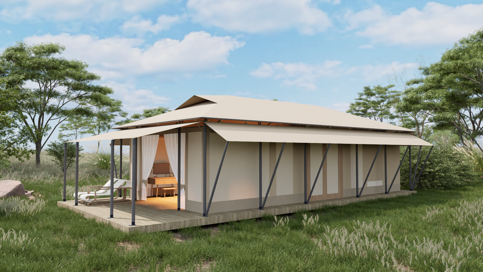 “荒野帐篷”专为高海拔、严寒、强风等严苛自然条件而生,以生存级防护性能为核心目标。设计理念强调“功能性优先”,通过极简结构实现最大可靠性,同时融入模块化扩展能力满足多场景适应需求。该系列产品通常采用低饱和度迷彩或纯色外观(如沙褐色、军绿色),减少对野生动物的视觉干扰,体现对生态的尊重。